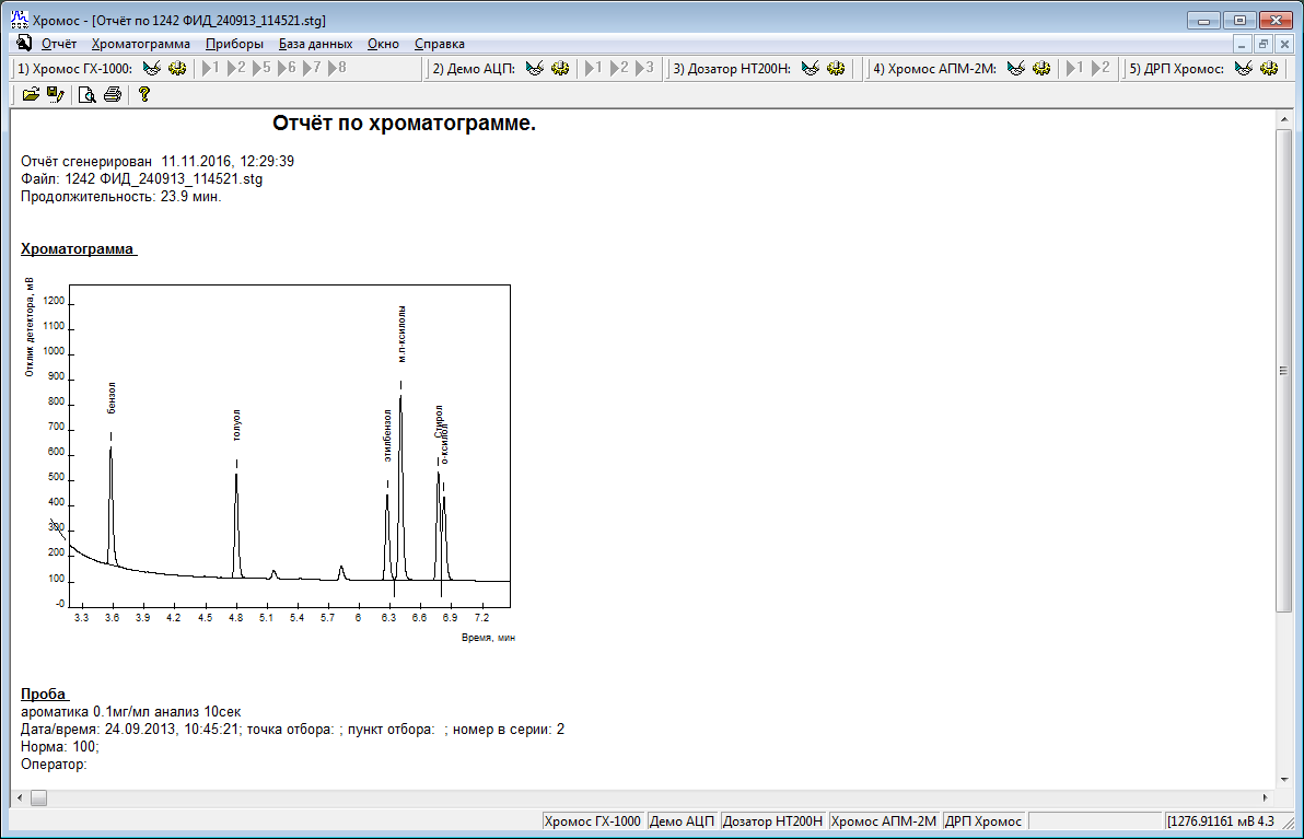 Программное обеспечение «Хромос» предназначено для сбора и обработки хроматографи- ческих данных, управления хроматографами, ведения базы данных по всем анализам в лаборато- рии или на производстве.