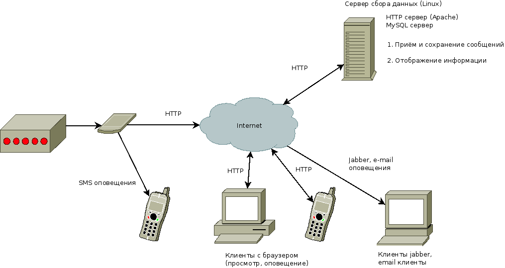 Система передачи тревожной информации выполняет функции электронного самописца аварийных и предупредительных входных сигналов и передачи этих сигналов в Jabber и SMS сообщениях.